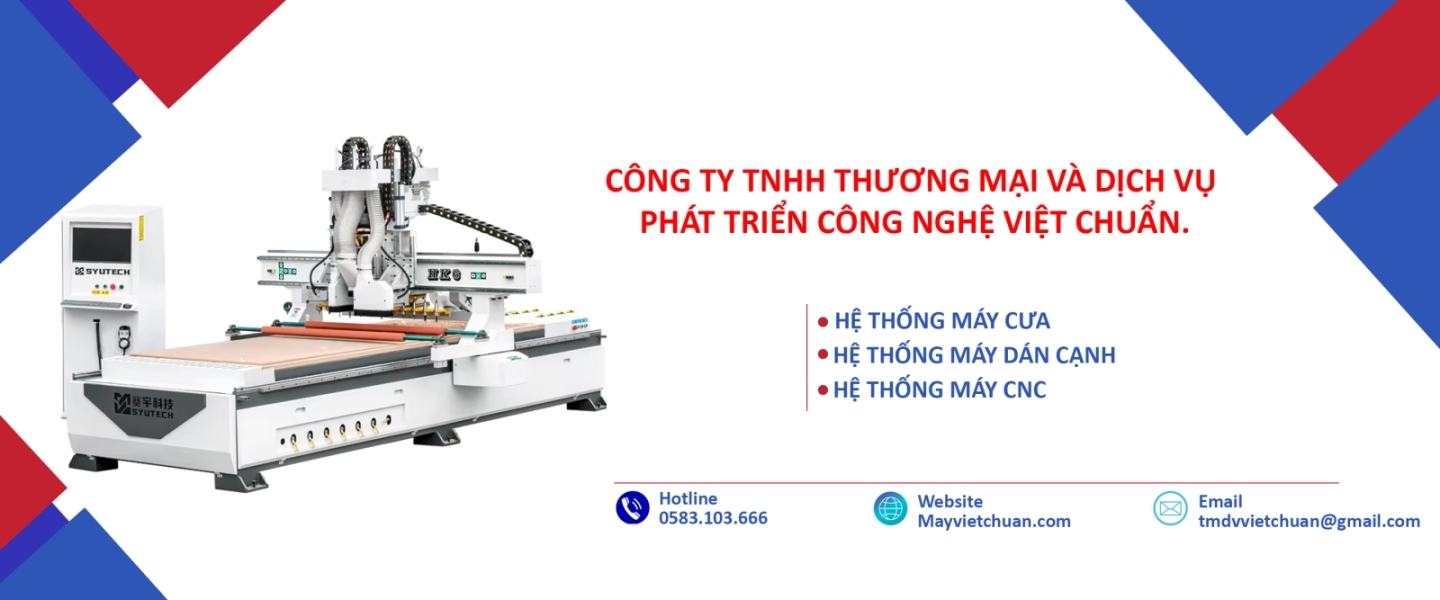 Việt chuẩn chuyên cung cấp các dòng máy gỗ công nghiệp như CNC, Cưa bàn trượt, máy dán cạnh tự động, máy khoan ngang, máy hút bụi....Hàng hóa luôn được bảo hành 12 tháng và bảo trì dài hạn.