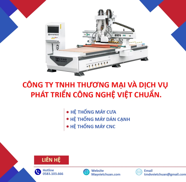 Bạn đang tìm địa chỉ mua máy dán cạnh tại Hà Nội uy tín, giá tốt và bảo hành dài hạn? Hãy đến với Việt Chuẩn – đơn vị chuyên cung cấp các dòng máy dán cạnh tự động, bán tự động, máy dán cạnh cong chính hãng, phù hợp mọi quy mô sản xuất nội thất. Việt Chuẩn cam kết lắp đặt tận nơi, hướng dẫn vận hành chi tiết, bảo hành lên đến 24 tháng cùng dịch vụ kỹ thuật chuyên sâu. Liên hệ ngay 0583 103 666 hoặc truy cập mayvietchuan.com để nhận báo giá tốt nhất hôm nay!